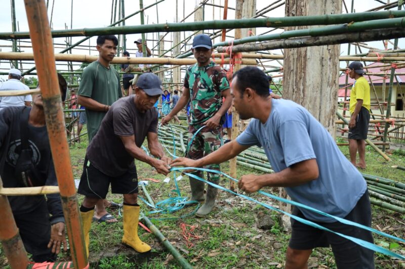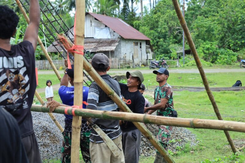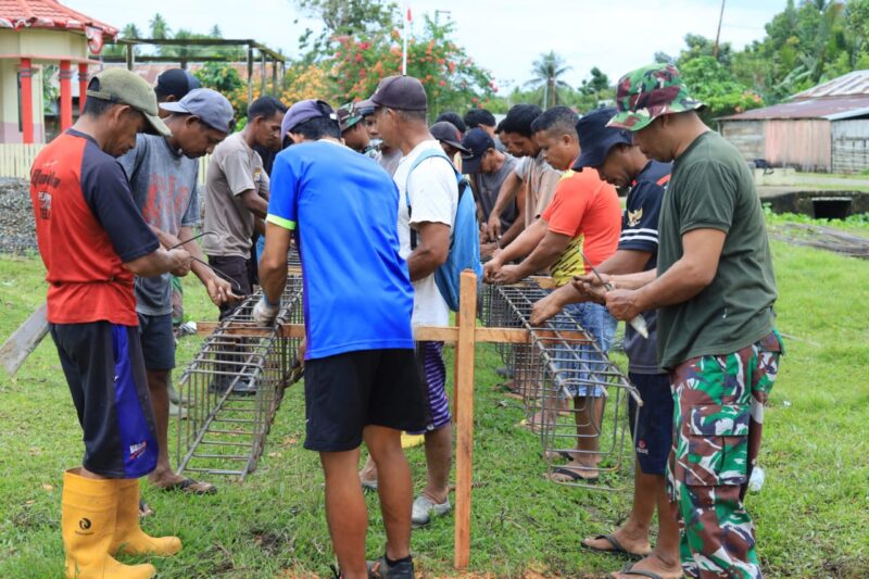 PristiwaNews | Tidore Kepulauan — Semangat kebersamaan dan gotong royong kembali terlihat dalam pelaksanaan TNI Manunggal Membangun Desa (TMMD) ke-126 Kodim 1505/Tidore. Personel Satgas TMMD bersama masyarakat bergotong royong melakukan pemasangan steleng dan rangka besi sebagai persiapan pengecoran tiang Masjid Desa Lifofa, Kecamatan Oba Selatan, Kota Tidore Kepulauan, Sabtu (11/10/2025).