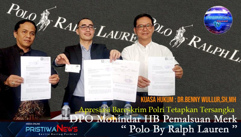 PristiwaNews | JAKARTA – Kuasa hukum Pengusaha Wongwa Groho Benny Wulur memberikan apresiasi setinggi setingginya kepada Bareskrim Polri khususnya Direktorat Tindak Pidana Tertentu (Dittipidter) yang memasukan daftar pencarian orang (DPO) kepada tersangka pemalsuan merek Ralph Lauren menjadi Polo By Ralph Lauren, MHB (Mohindar HB) pada Agustus 2023