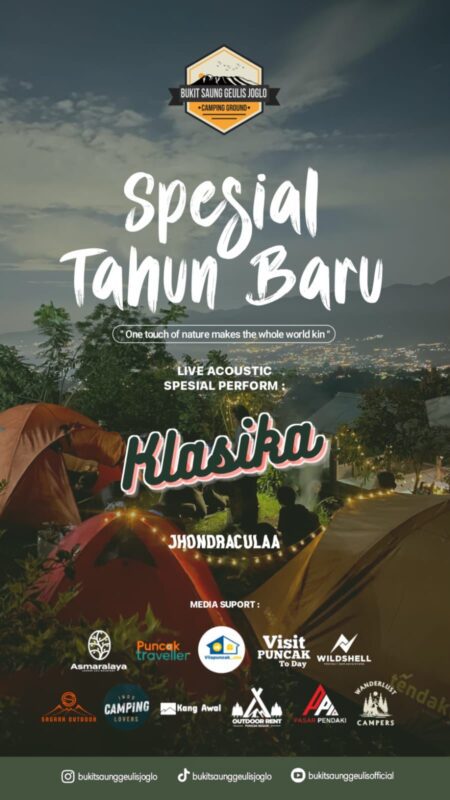 Terpantau di lokasi saat ini sudah 250 tenda lebih, dan hampir 500 pengunjung menempati Bukit Saung Geulis Joglo, tentunya mereka semua ingin ikut menyaksikan detik-detik malam pergantian tahun di atas ketinggian 1375 MDPL dengan pemandangan yang terbaik.