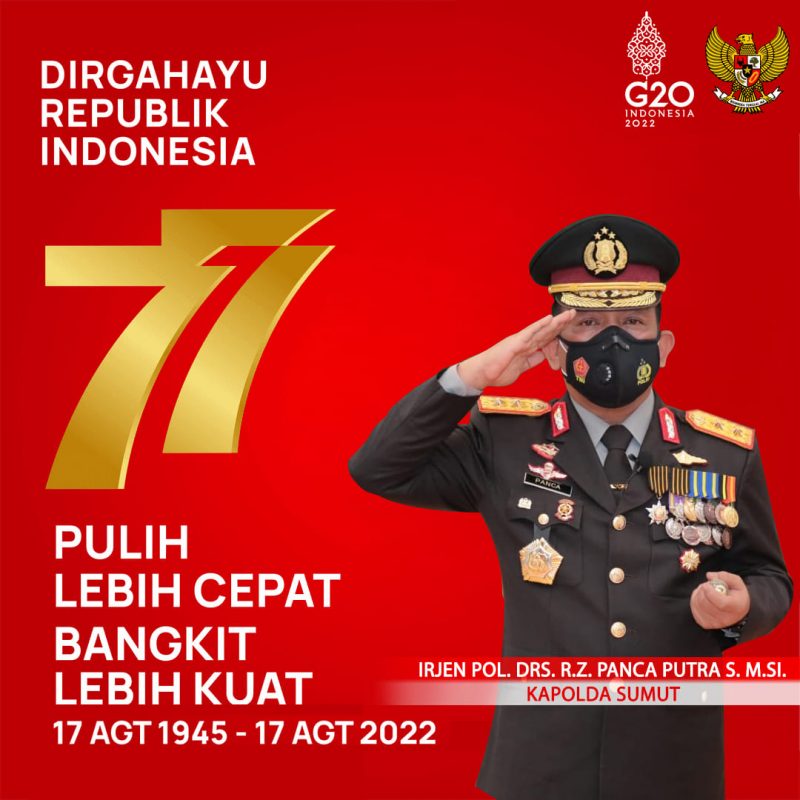 PristiwaNews // Medan – Kapolda Sumut Irjen Pol. Drs. R.Z. Panca Putra S., M.Si mengikuti upacara peringatan Hari Kemerdekaan Republik Indonesia ke 77 di Lapangan Astaka Jalan Willem Iskandar Pancing Medan, Rabu (17/08/22)