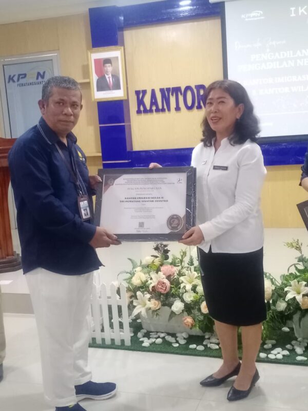 PristiwaNews // PEMATANG SIANTAR – Kantor imigrasi kelas II TPI Pematangsiantar Kanwil Kemenkumham Sumut mendapatkan penghargaan dari Kantor Pelayanan perbendaharaan Negara (KPPN) Kota Pematang Siantar, Rabu (20/9).