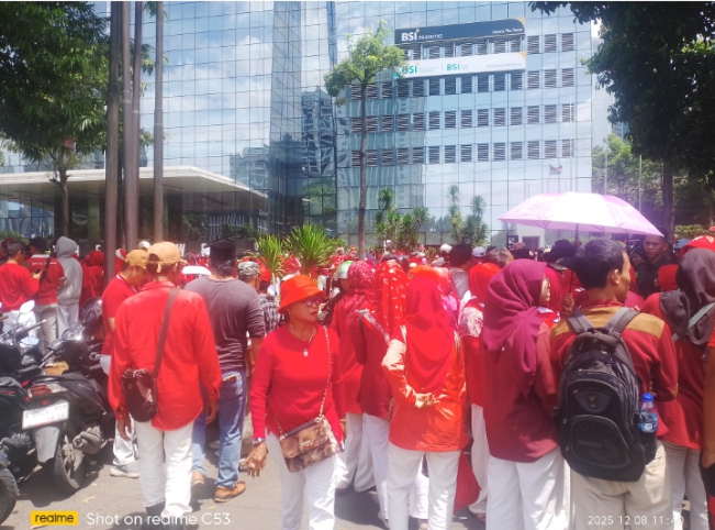 PristiwaNews | JAKARTA – Kantor pusat BSI (Bank Syariah Indonesia) yang berlokasi di Jalan Gatot Subroto Kelurahan Karet Semanggi, Kecamatan Setiabudi, Kota Jakarta Selatan, digeruduk puluhan juta masyarakat yang berpakaian serba merah putih untuk mewakili bangsa Indonesia demi mendapatkan dana hibah untuk kepentingan pemerintah dan masyarakat.