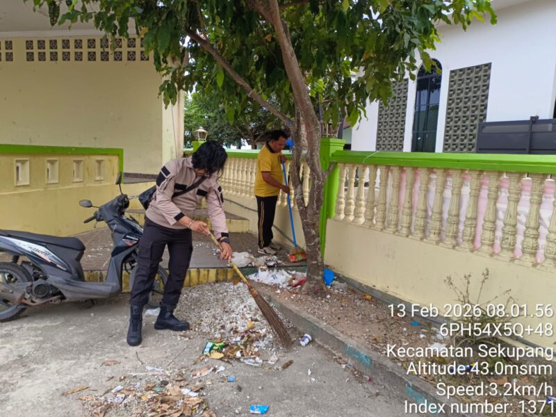 Pristiwa news. Batam. Polsek Sekupang bersama Sat Intelkam Polresta Barelang melaksanakan kegiatan gotong royong dalam rangka mewujudkan lingkungan sekolah dan tempat ibadah yang bersih, nyaman, dan asri di SD 010 Kelurahan Tiban Lama serta Masjid Jamal Jamil, Kecamatan Sekupang, Kota Batam. Kegiatan dimulai sekira pukul 07.00 WIB hingga selesai, dipimpin langsung oleh Kapolsek Sekupang Kompol Tua Hippal Sirait, S.H., M.H., Jumat, (13/02/2026).