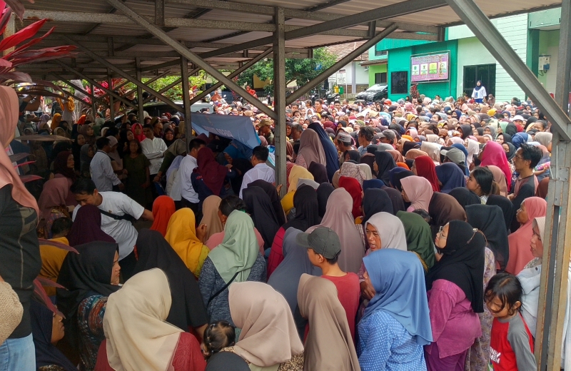 Pelaksanaan Gerakan Pangan Murah (GPM) di Kecamatan Cisoka Kabupaten Tangerang dihentikan, karena antusiasnya warga atau membludaknya warga yang memenuhi halaman kantor Kecamatan