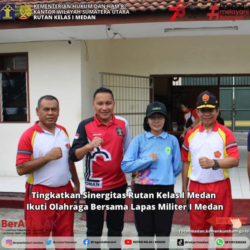 PristiwaNews // MEDAN – Dalam rangka meningkatkan sinergitas antara Aparat Penegak Hukum (APH) Rumah Tahanan Negara (Rutan) Kelas I Medan Kanwil Kemenkumham Sumut ikuti olahraga bersama komuniti hukum wilayah Medan, Jumat (15/9).